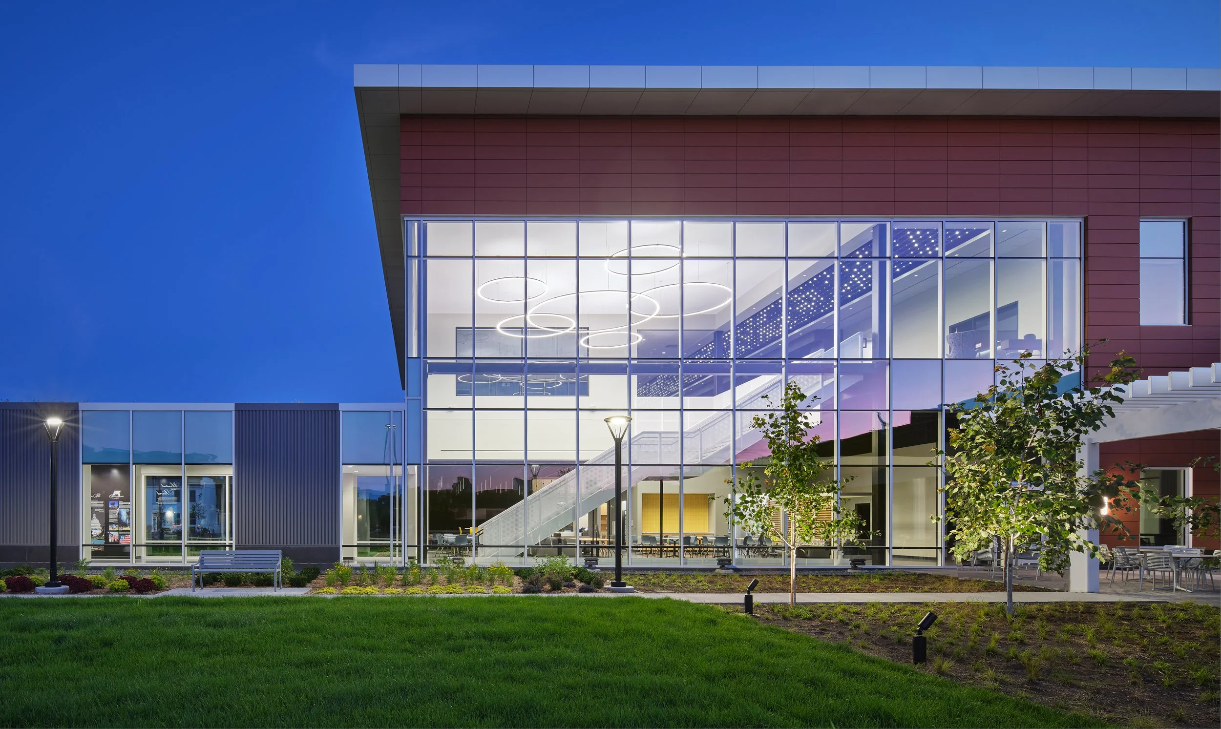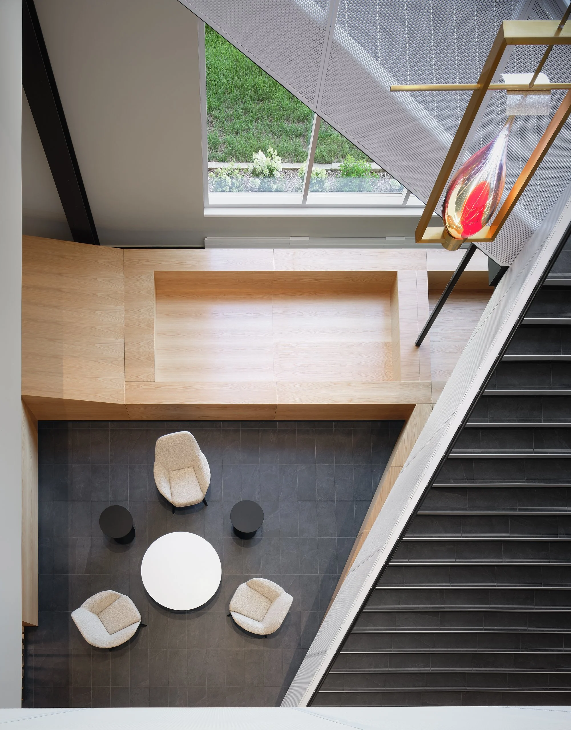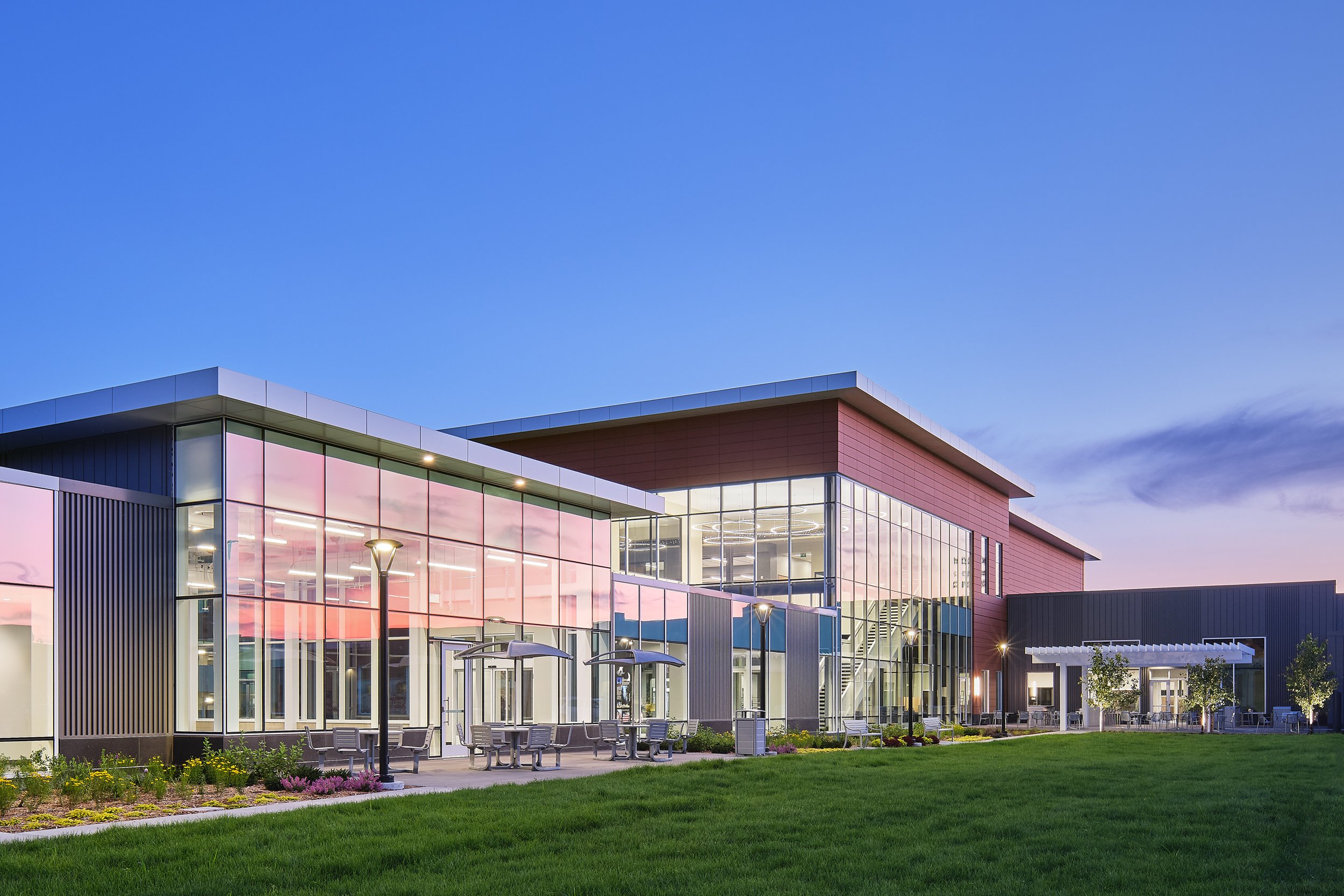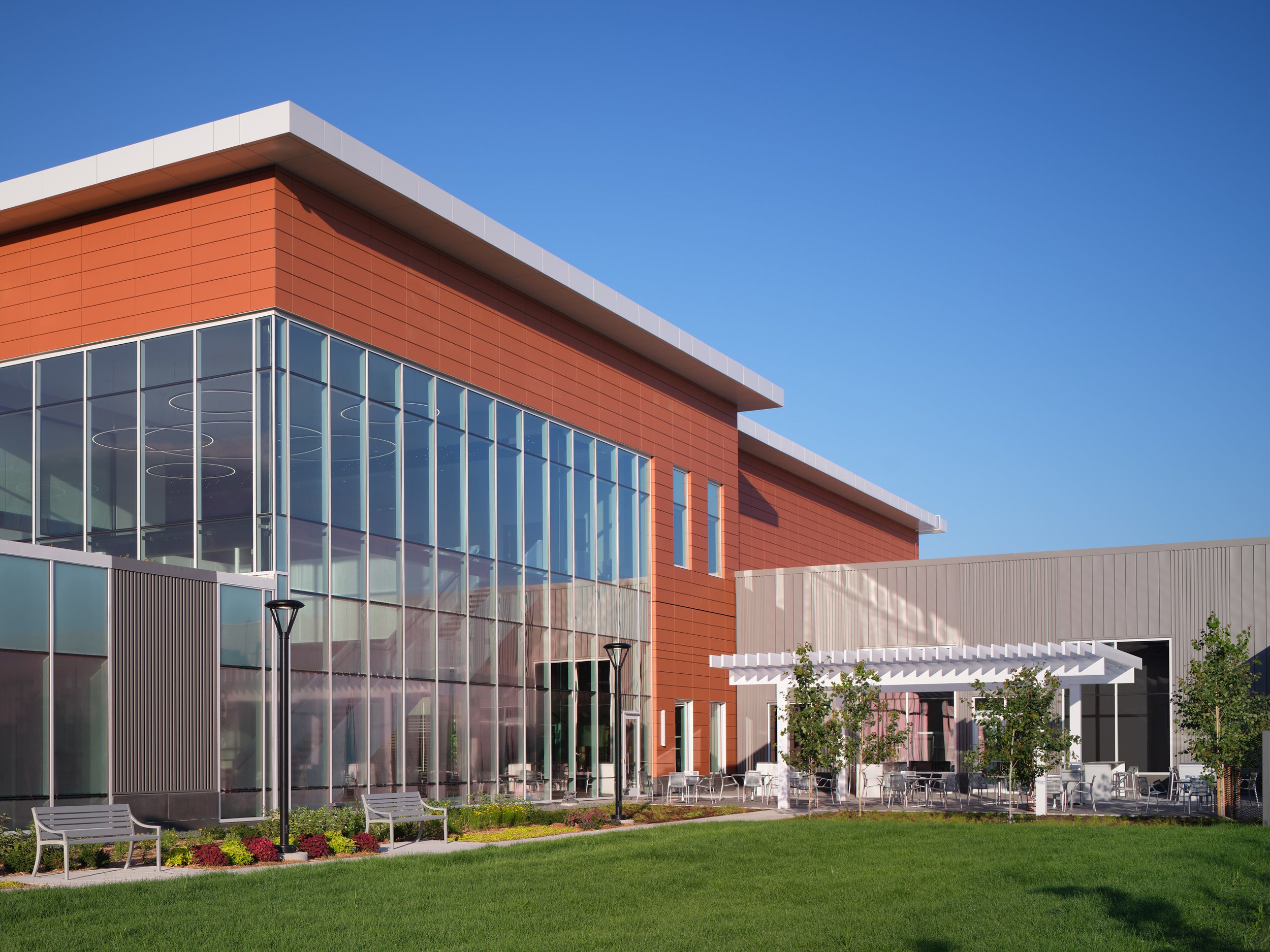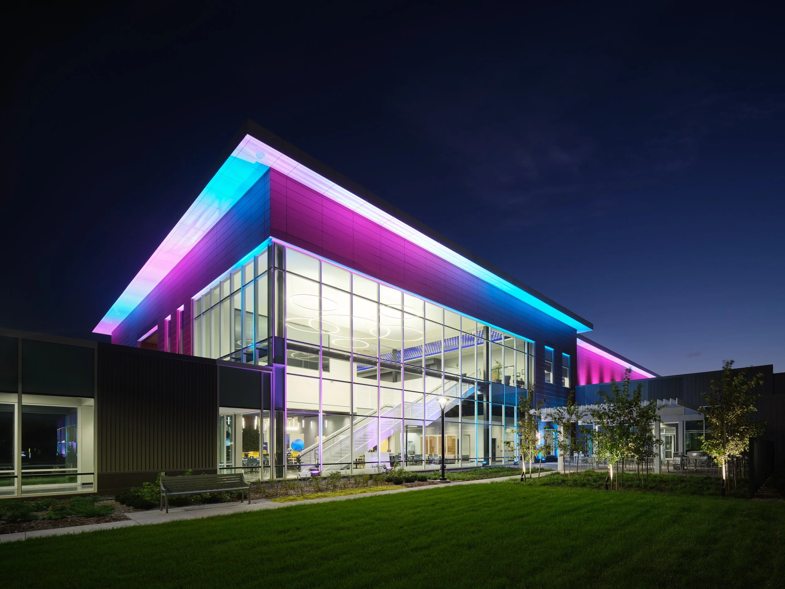 Musco Sports Lighting recently underwent a 74,000 square-foot office renovation and expansion at their corporate headquarters located in downtown Oskaloosa, IA. With design lead by SVPA Architects and construction completed by Neumann Brothers of Des Moines, IA, a three-floor parking garage was also added to help accommodate employees - holding approximately 400 vehicles connected by a second story skywalk. Providing both architectural photography and aerial drone photography was critical to help capture the scale of the project and share the story of the companies vision and expansion.
