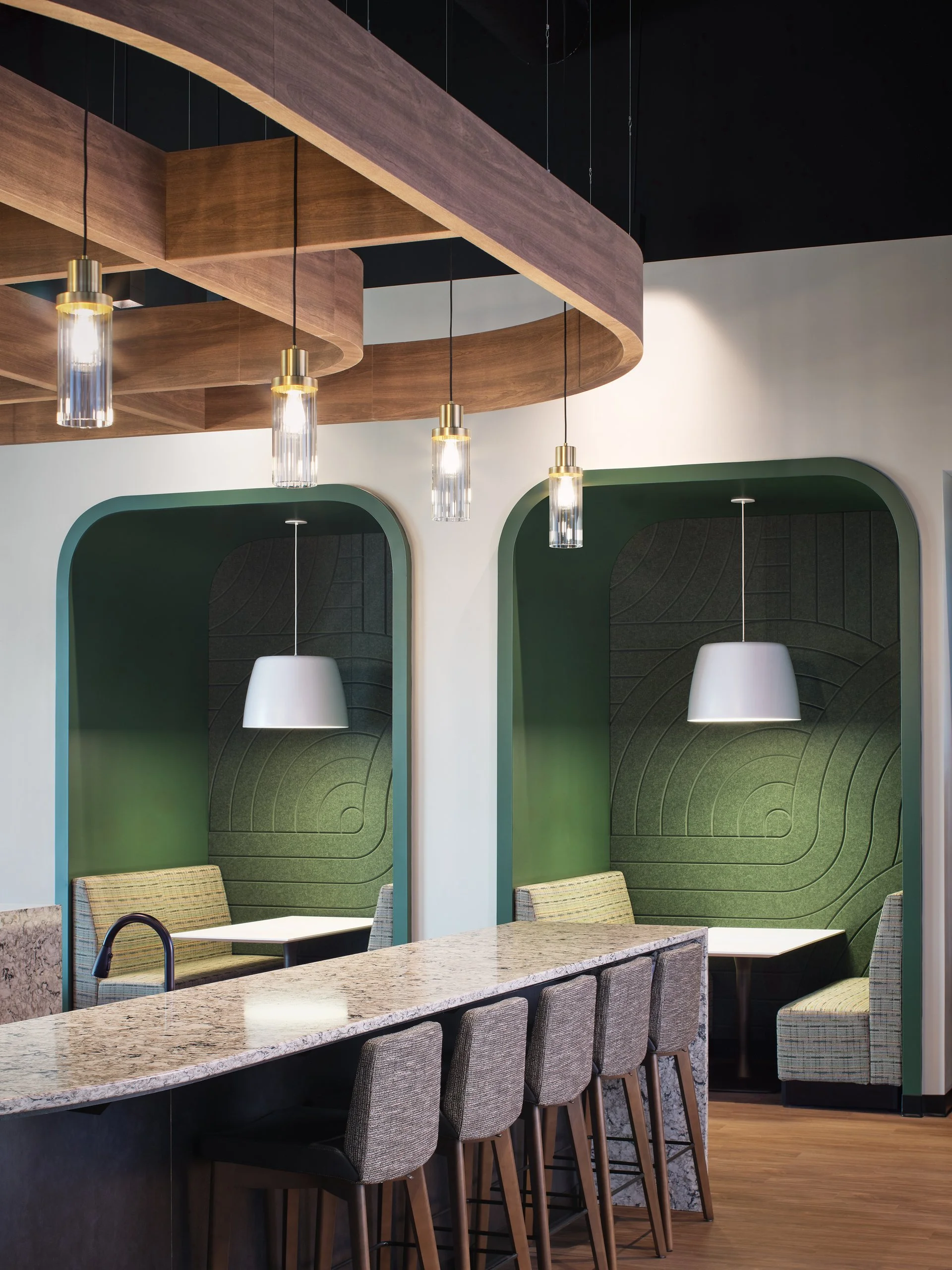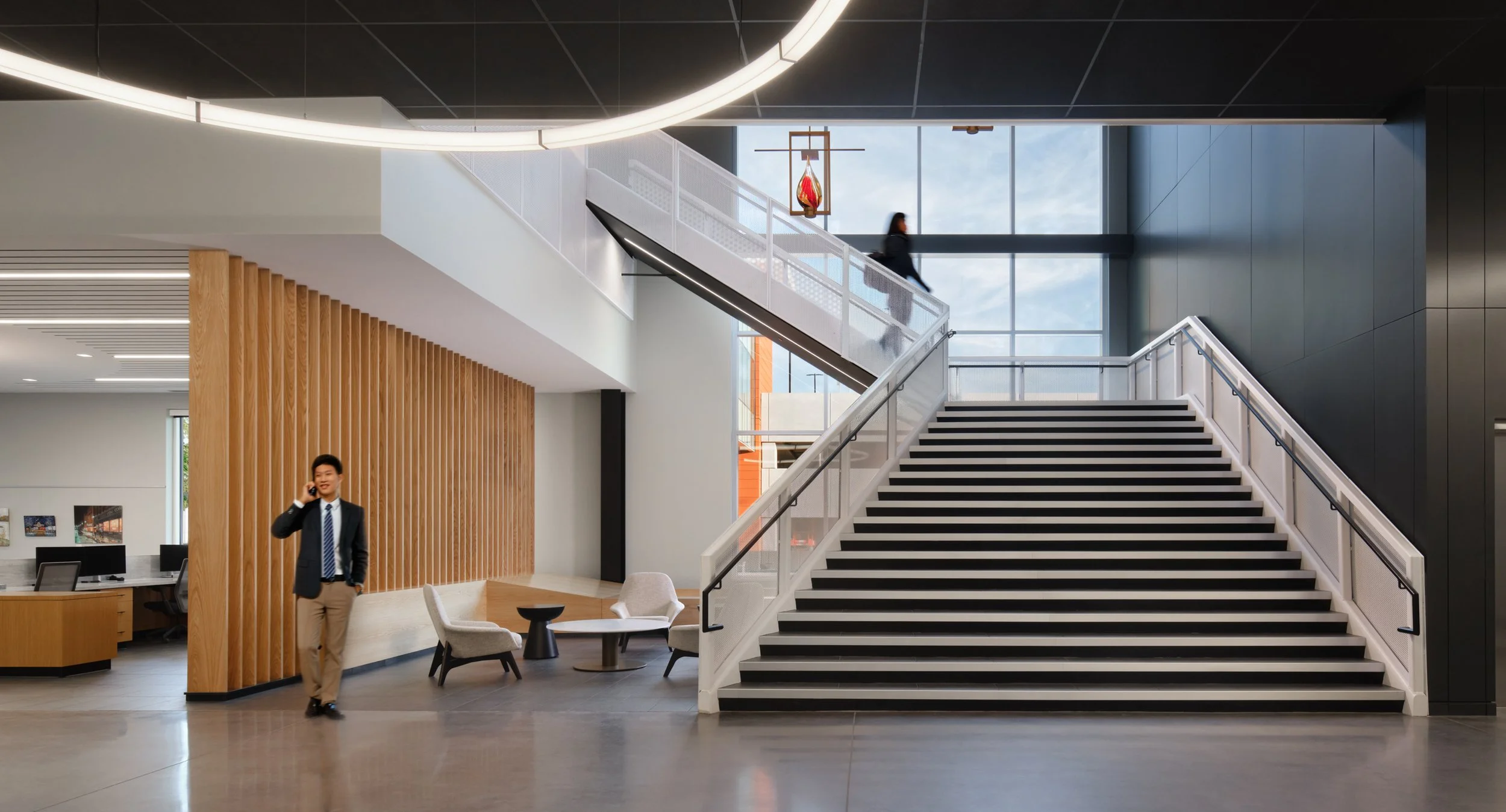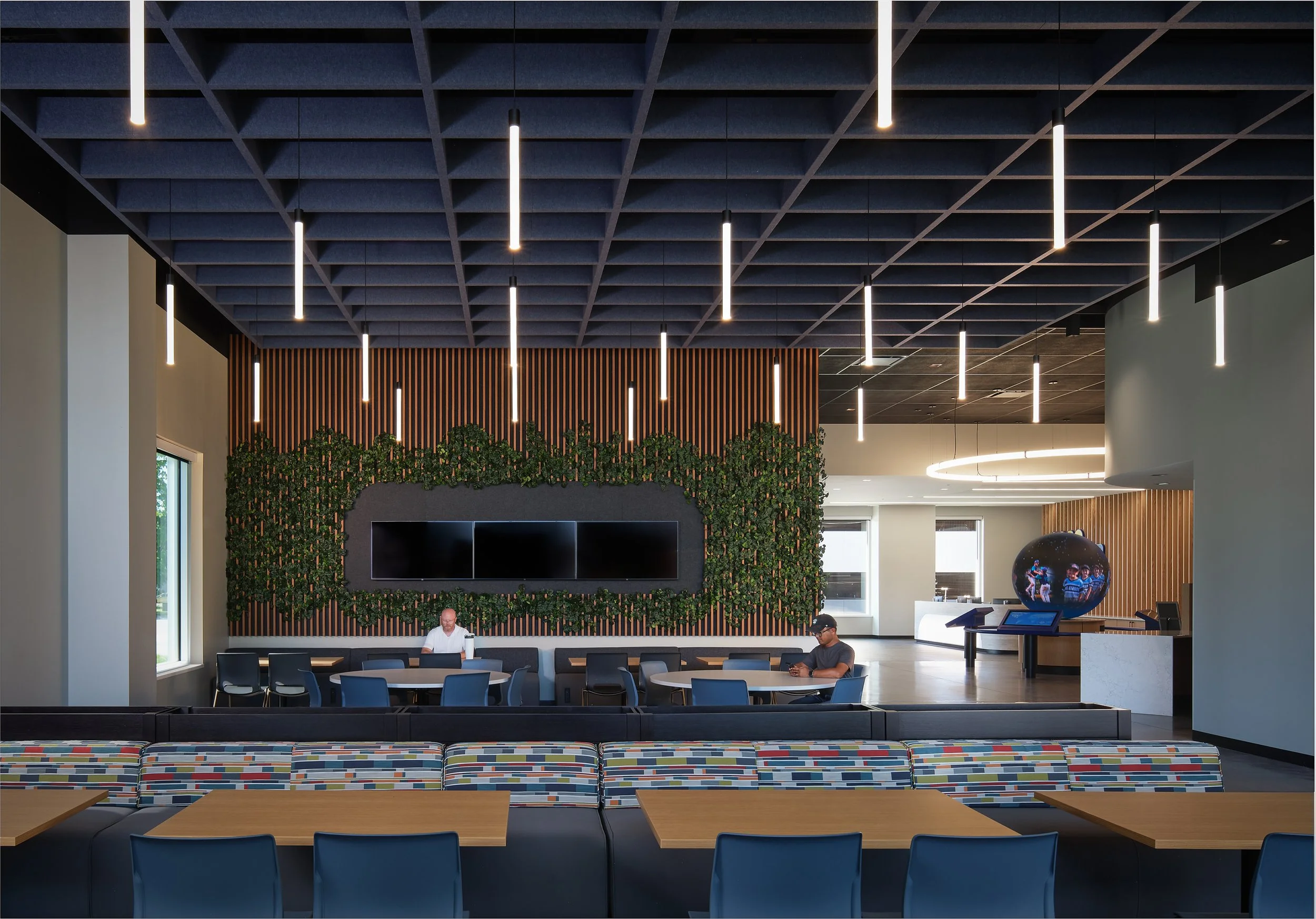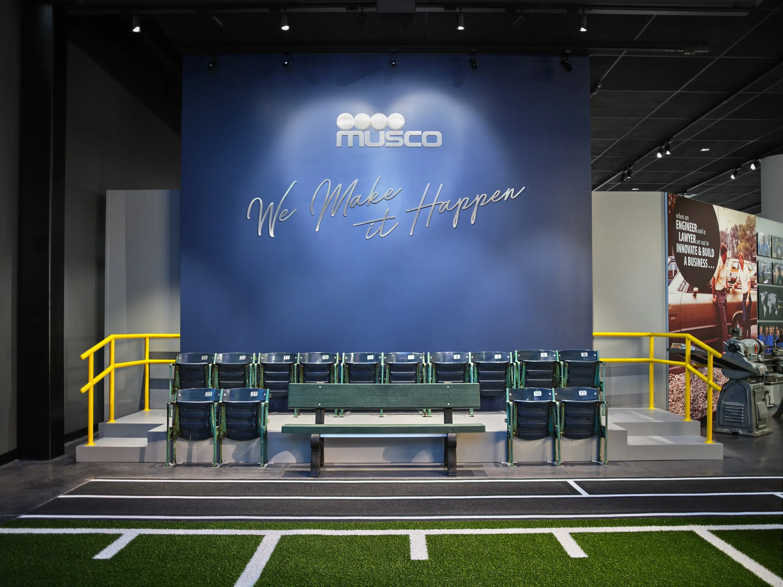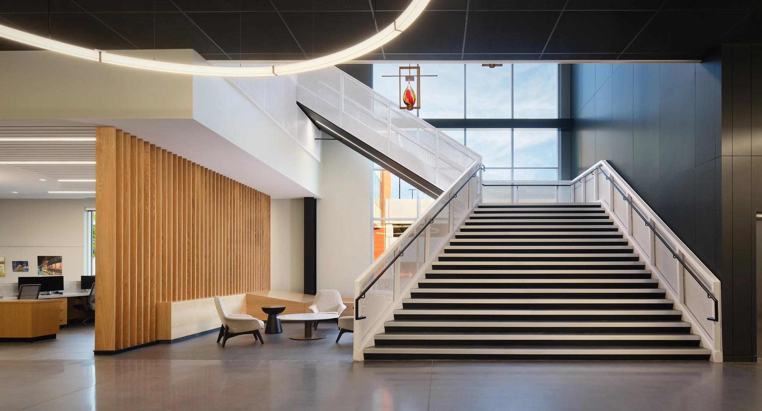 Musco Sports Lighting recently underwent a 74,000 square-foot office renovation and expansion at their corporate headquarters located in downtown Oskaloosa, IA. With design lead by SVPA Architects and construction completed by Neumann Brothers of Des Moines, IA, a three-floor parking garage was also added to help accommodate employees - holding approximately 400 vehicles connected by a second story skywalk. Providing both architectural photography and aerial drone photography was critical to help capture the scale of the project and share the story of the companies vision and expansion.